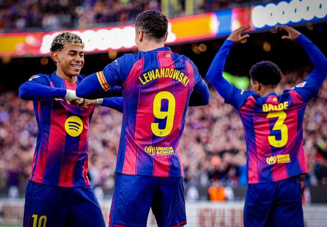 诺坎普呼唤梅西!莱万闪击,亚马尔天秀助攻,巴萨4-0登顶西甲第1